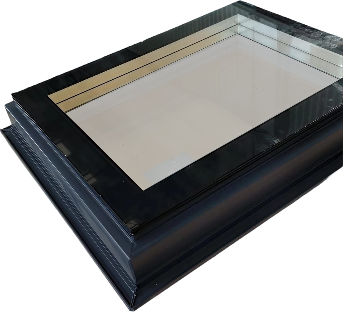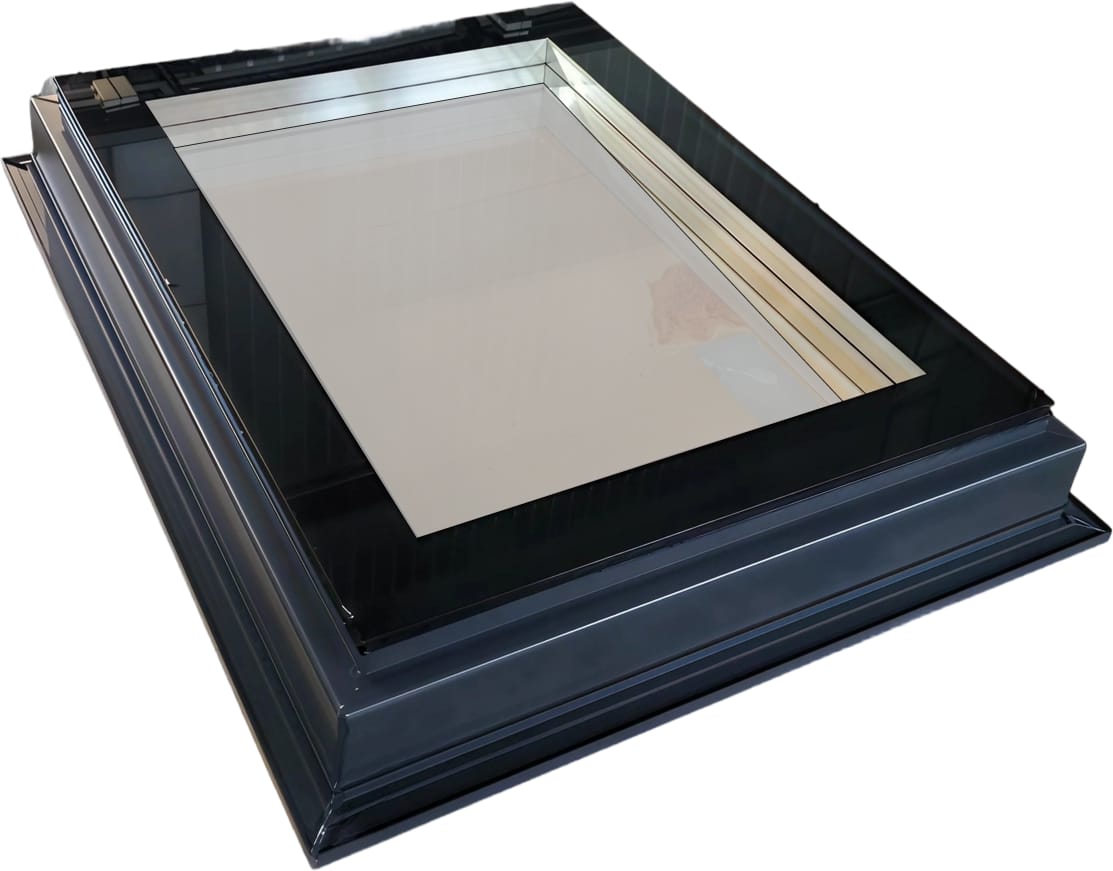 Мансардное ПВХ окно с двухкамерным энергосберегающим стеклопакетом с наружным закалённым стеклом. Глухое пластиковое мансардное окно изготовлено из профиля Monsari Pier.